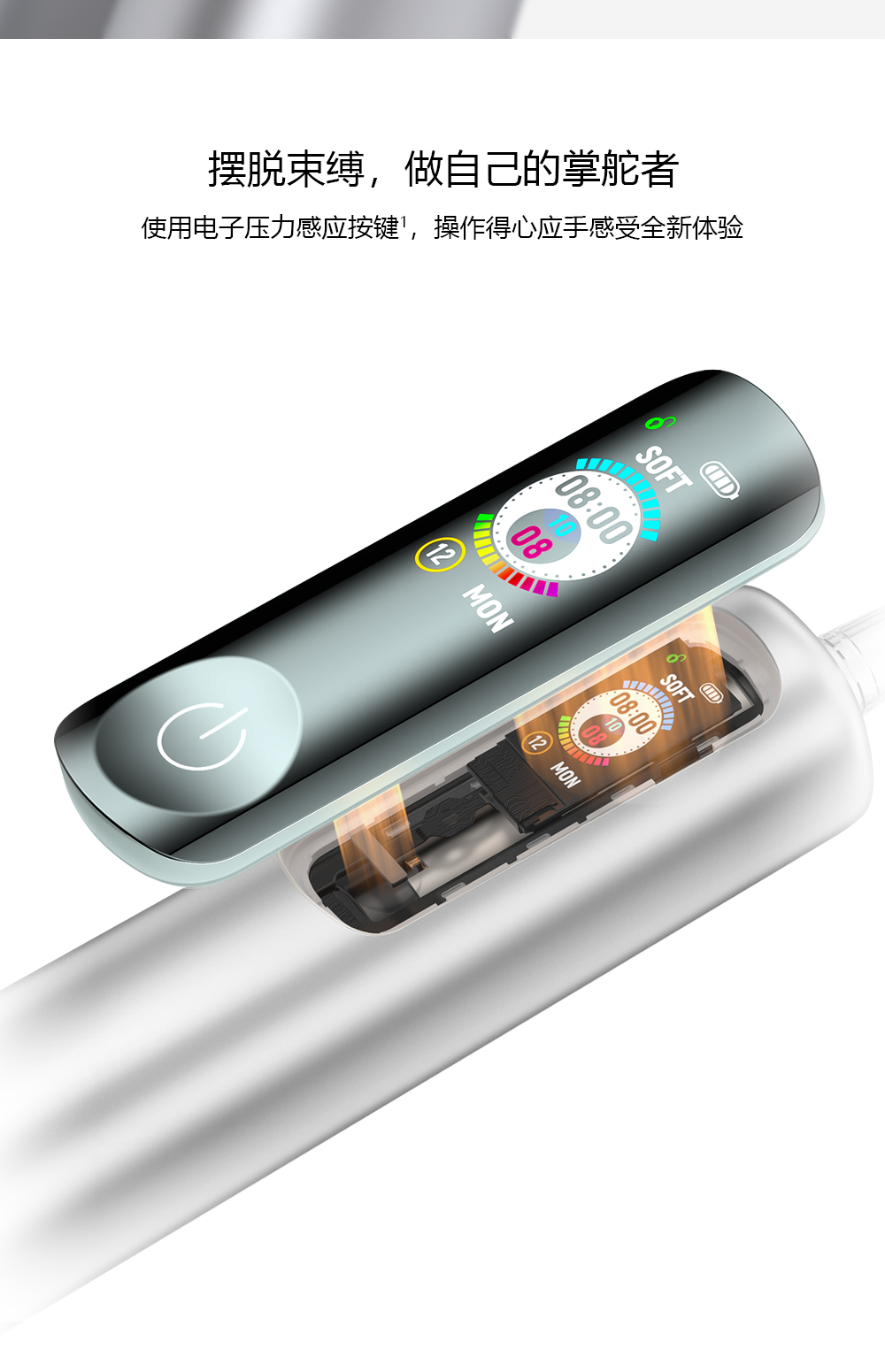 imask 3 电动牙刷附件包含主机1支,用户使用手册1本,充电座1个,刷头2支,数据线1条。